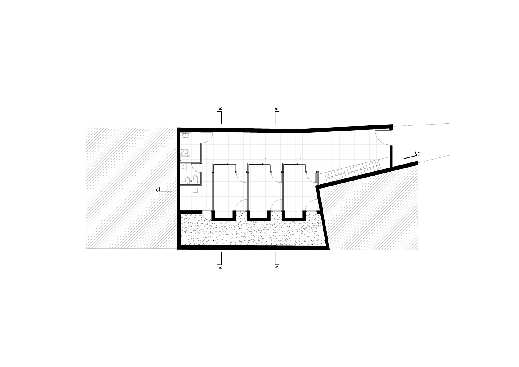 Los consultorios médicos suponen lugares cerrados, mayormente iluminados artificialmente y con una calidad espacial muchas veces monótona. Al recibir el encargo siempre nos preguntamos qué es lo que nos están encargando. En este caso, ¿qué es un centro de consultorios médicos? En primera instancia, nos encontramos con el lugar, un terreno atípico con un frente sumamente angosto sobre calle Italia. El mismo nos dio la posibilidad de generar un ingreso de reducidas dimensiones sobre esta arteria de circulación media para pasar a una segunda “capa” que se amplía, el espacio interior.